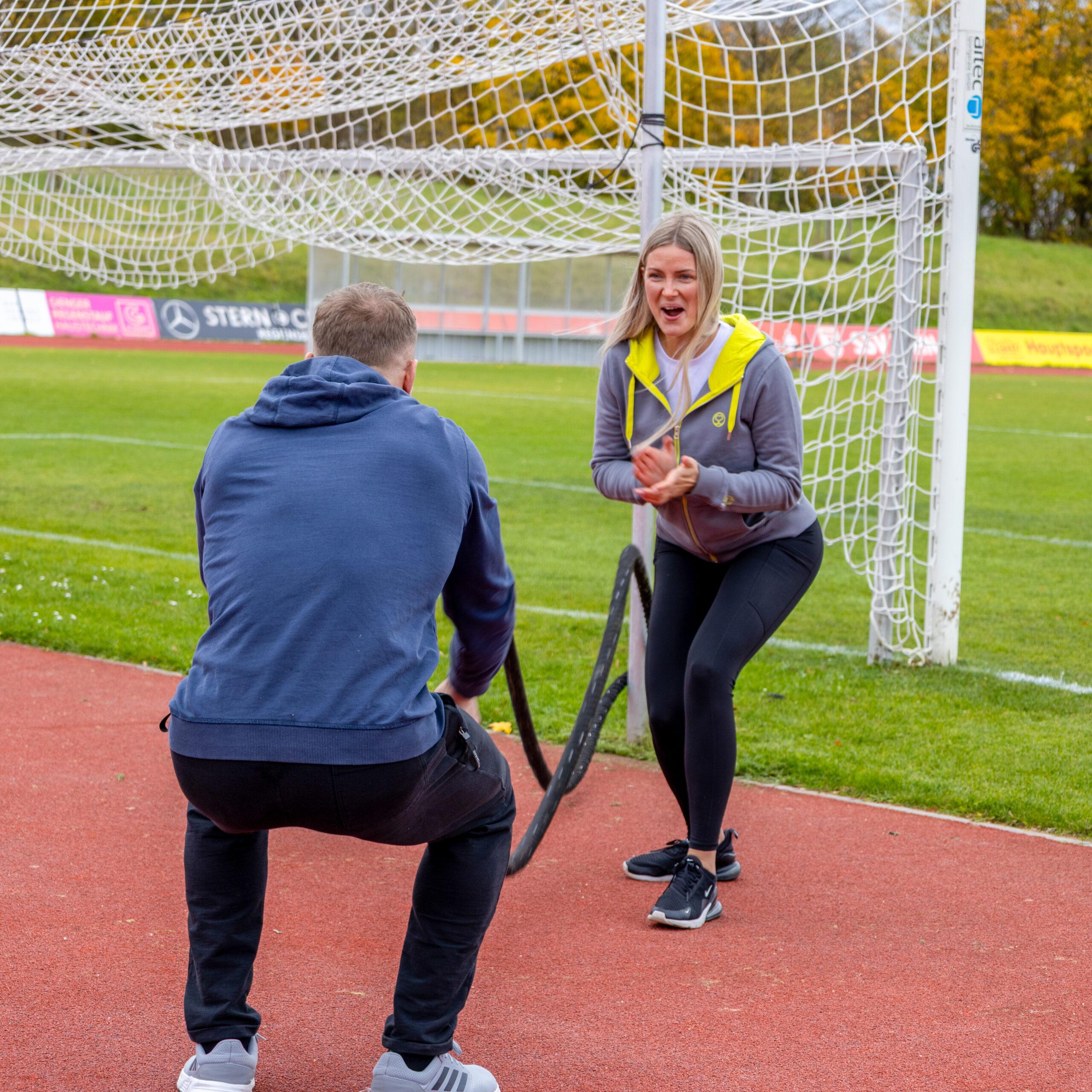 Trainiert gemeinsam und motiviert euch dadurch noch gegenseitig, denn zu zweit ist es immer leichter als wenn du es alleine schaffen musst.